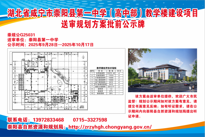 崇阳县第一中学(高中部)教学楼建设项目送审规划方案批前公示