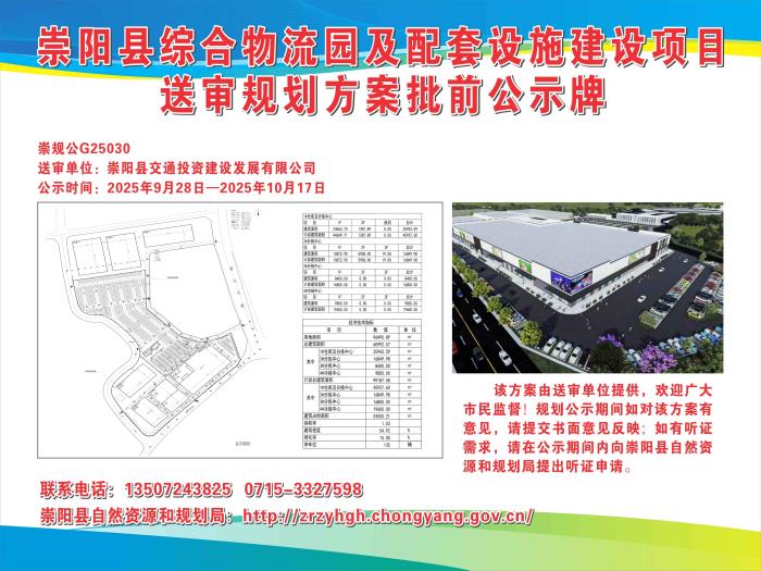 崇阳县综合物流园及配套设施建设项目送审规划方案批前公示